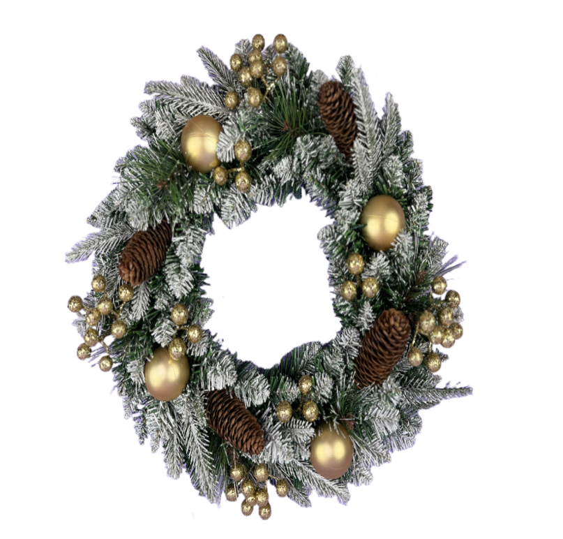 40cm Artificial Spruce and Pine Christmas Wreath With Ornament,Holly, red Berries & Real Pine cones.