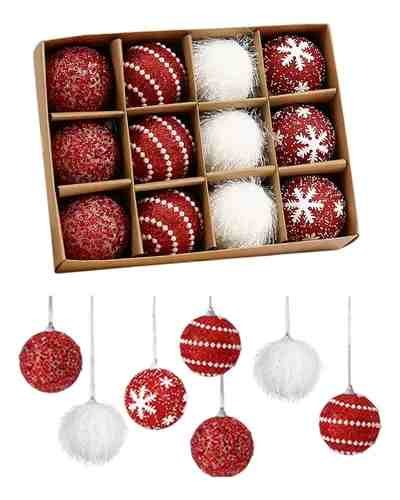 Christmas Decorations for Parties 12-Piece Flocked Christmas Decoration Set Various styles of Christmas tree ornaments